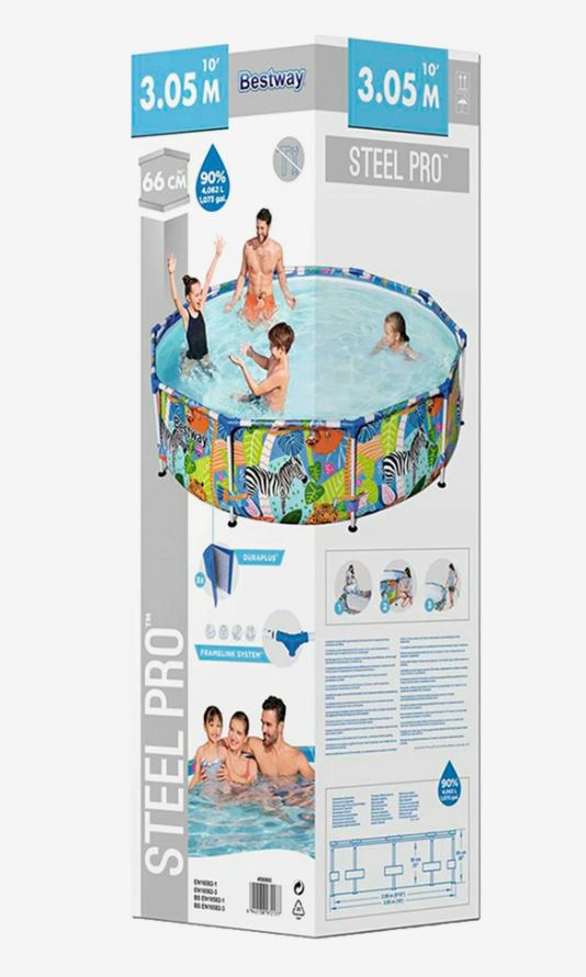 Садовый бассейн Steel Pro размером 305 х 66 см имеет металлический каркас и трехслойный ПВХ-материал. Вместе они образуют очень прочный корпус, поэтому вы сможете наслаждаться покупкой в течение следующих нескольких летних сезонов. Красочная графика животных наверняка понравится детям младшего возраста, а бассейн станет любимым местом для развлечений в летние дни. В танке легко поместится вся семья, чтобы весело провести время вместе.