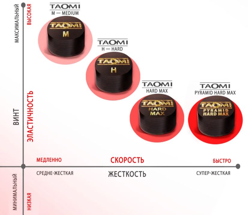 - TAO-MI NEW GENERATION адаптируются к индивидуальному стилю игры, идеально держат мел и дают лучшее сцепление с шаром, больше вращения и управления.